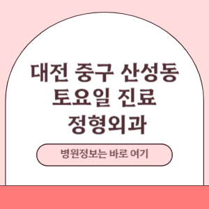 오늘은 대전 중구 산성동에서 토요일에 문여는 정형외과 정보를 준비하였습니다. 해당 글이 토요일에 갑자기 병원을 찾는 분들에게 도움이 되었으면 합니다.